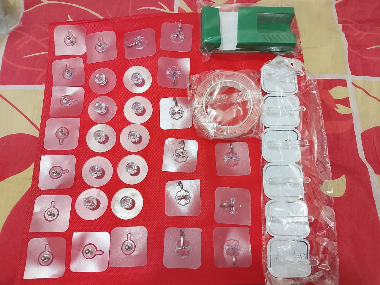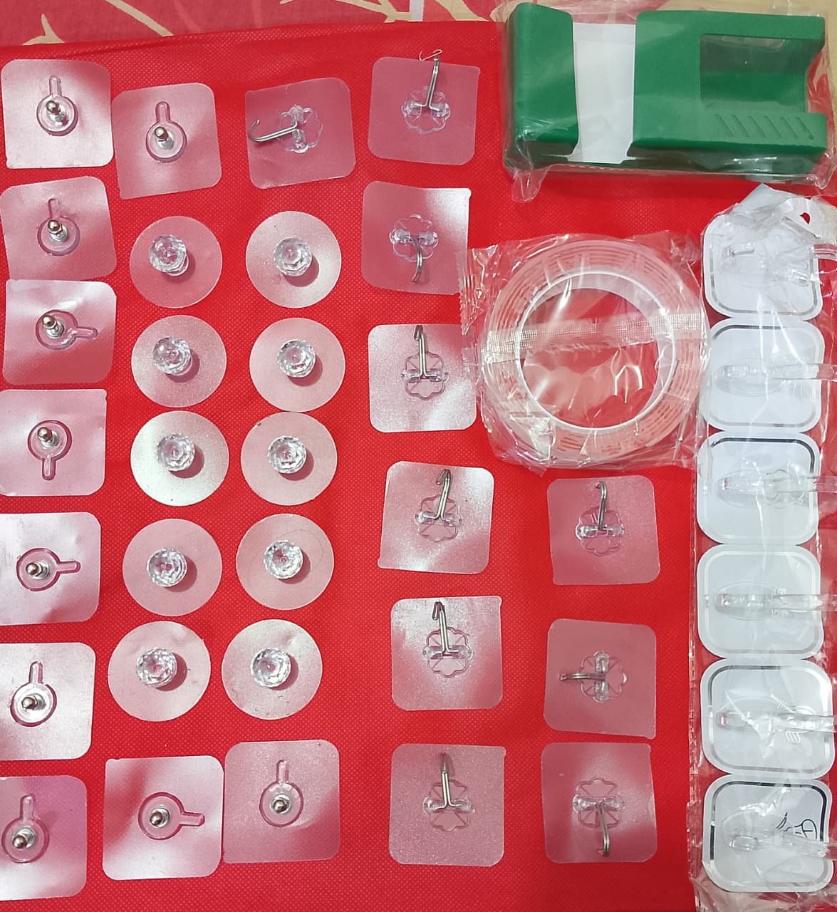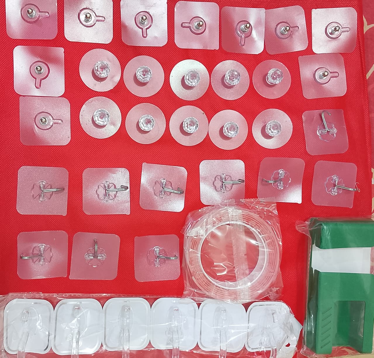 (১) ডাবল সাইড ম্যাজিক টেপ (১ পিস) যার দুই দিকেই আঠা রয়েছে যা দিয়ে আপনি দেয়ালে রাউটার, ঘড়ি, হালকা ও ভারী জিনিস সহজে লাগাতে পারবেন। এটি আপনাকে দেয়াল ফুটো করা সহ অনেক ঝামেলা থেকে মুক্তি দেবে।