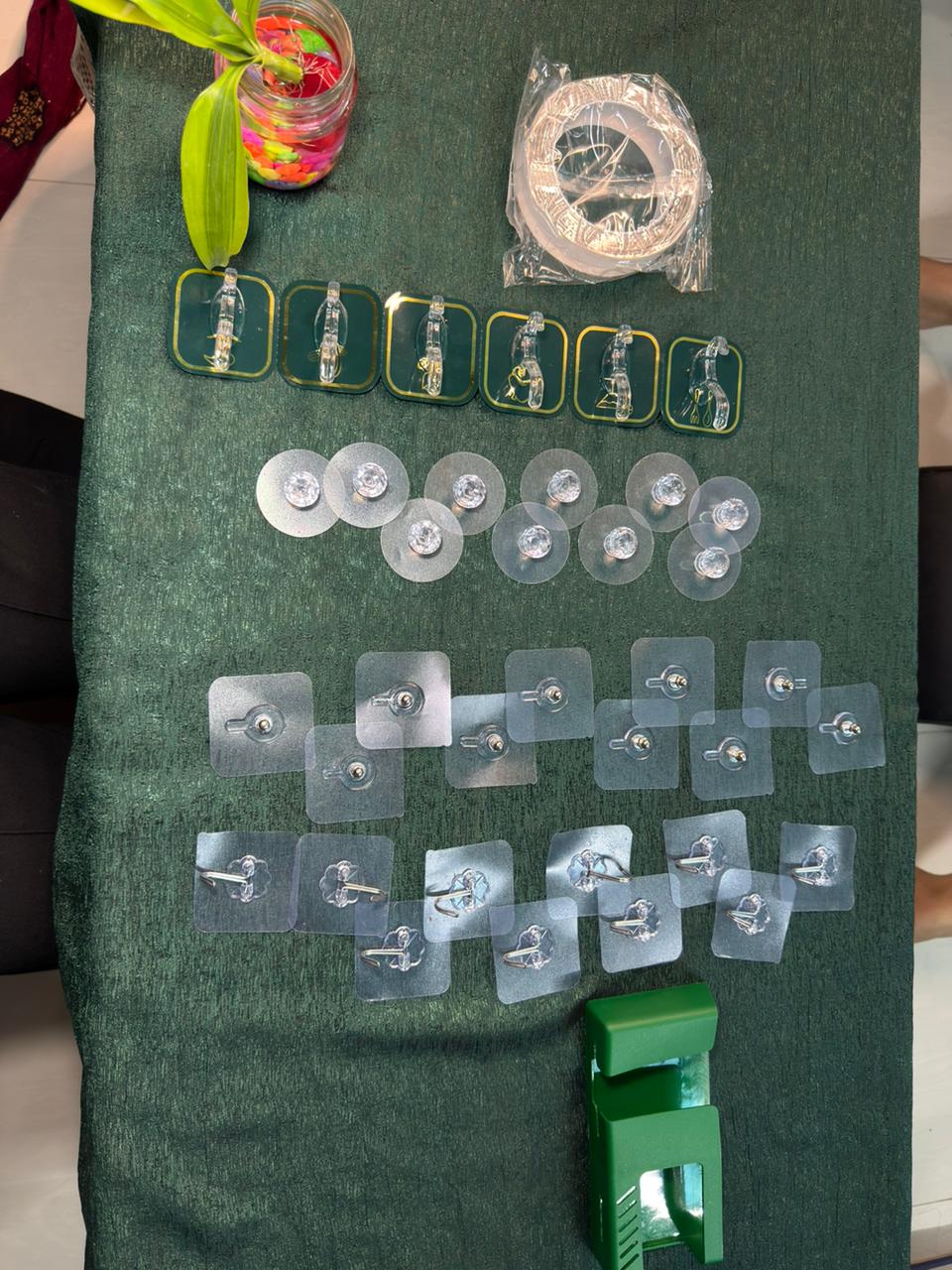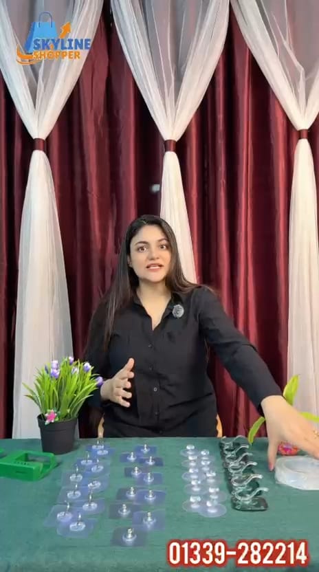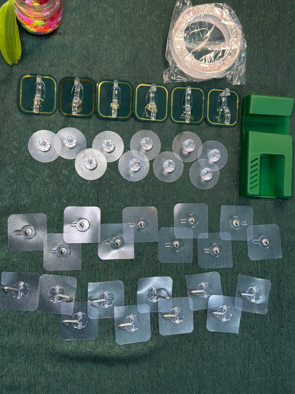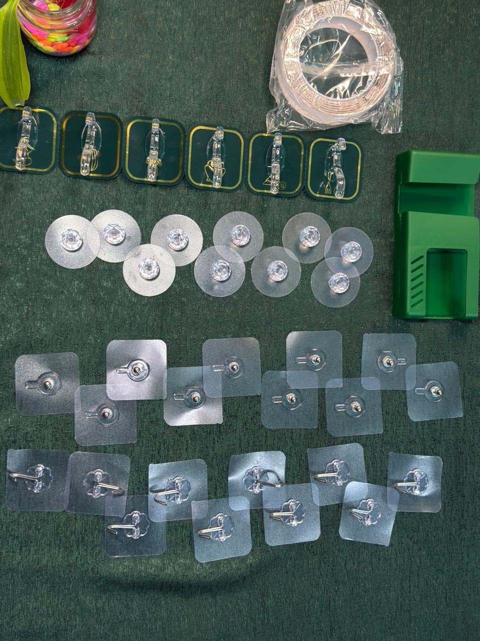 (৬) ট্রান্সপেরেন্ট ওয়াল হুক (১০ পিস) এই হুকের সাহায্য ছবি, ছোট শো পিস, রান্নাঘরের চামচ, কাপ বা অন্যান্য রান্নার সরঞ্জাম, বাথরুমের তোয়ালে, ব্রাশ, ঝুড়ি,ছাতা বা হালকা কাপড় ঝুলিয়ে রাখতে পারবেন।