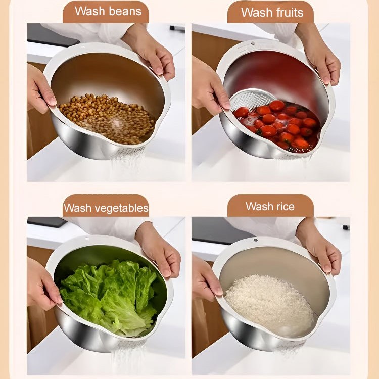 Stainless Steel Rice,Fruit,Vegetable,Noodle Cleaning Bowl